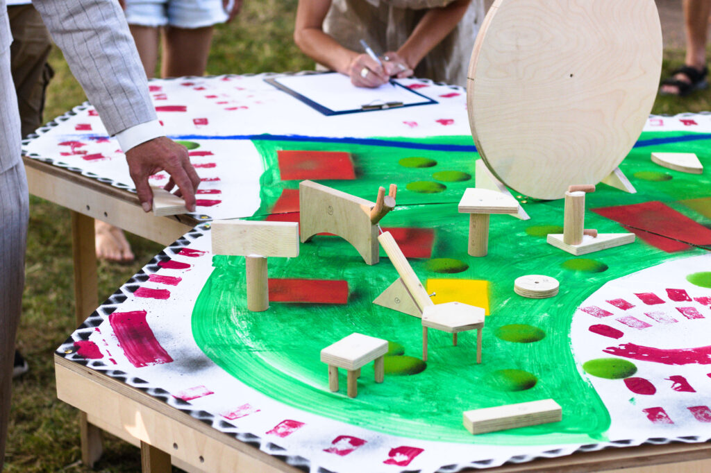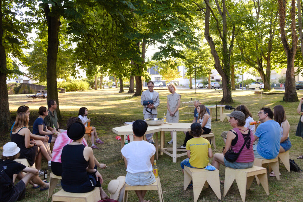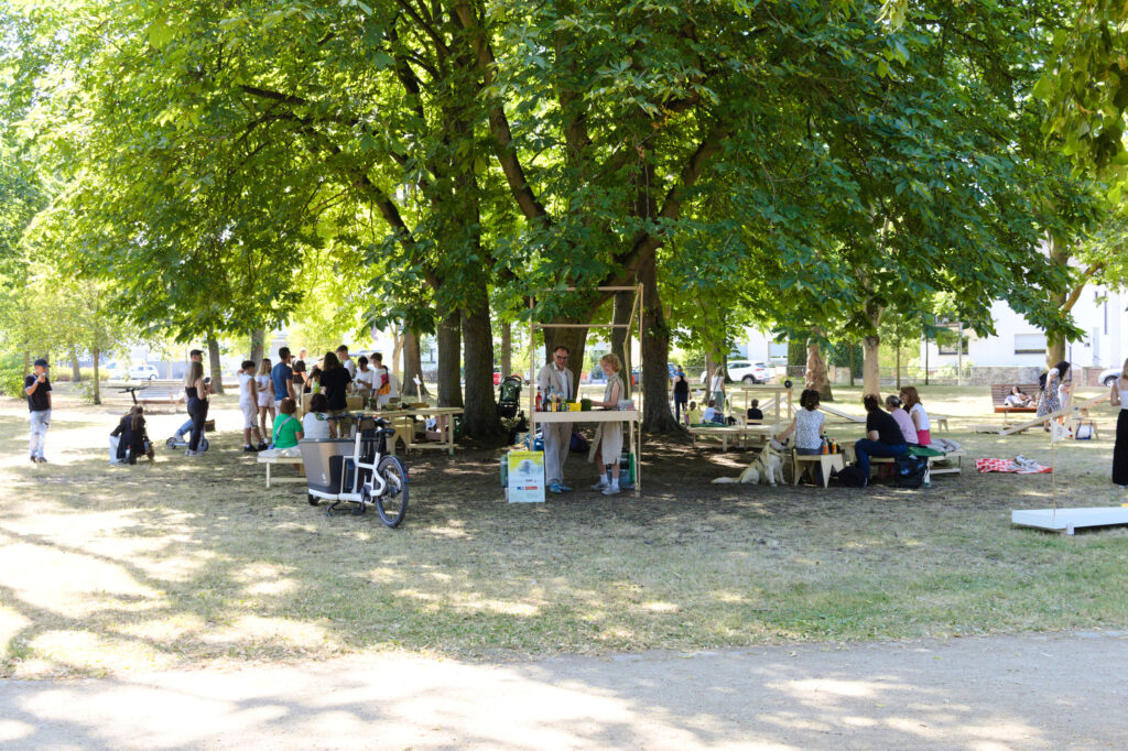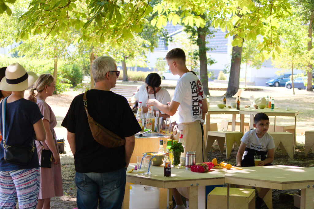 Inspiriert von der antiken Agora schufen Charlotte Birkner-Behlen und Lars Moritz 2025 den BÜRGERINNENPARK in Mühlheim am Main, einer Mittelstadt im Rhein-Main-Gebiet. Basierend auf einer modularen Wabenarchitektur entstand ein Raum zwischen Treffpunkt, Jahrmarkt und Raumstation. Ein Raum, an dem die MühlheimerInnen gemeinsam herausfinden konnten, wie das Mühlheim von übermorgen aussehen sollte. Über einen Zeitraum von 9 Tagen gab es Stadtaneignungs-Workshops, Performances, Hängematten, ein großes Mittagessen, Minigolf und eine fette Party zum Beginn der Sommerferien. Mehr Infos gibt es auf der Homepage des Projekts buergerinnenpark.net„
